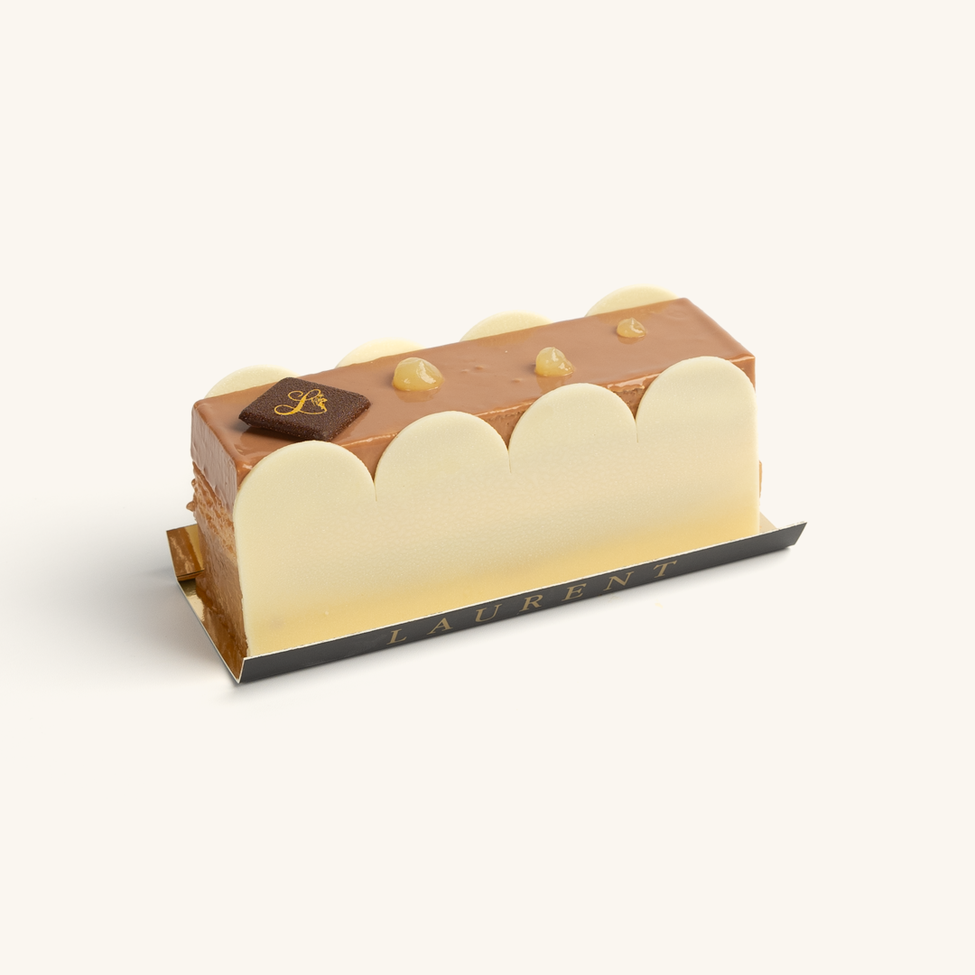 Soft biscuit cuillère layered with pear mousse, pear jelly, and a smooth chocolate glaze.