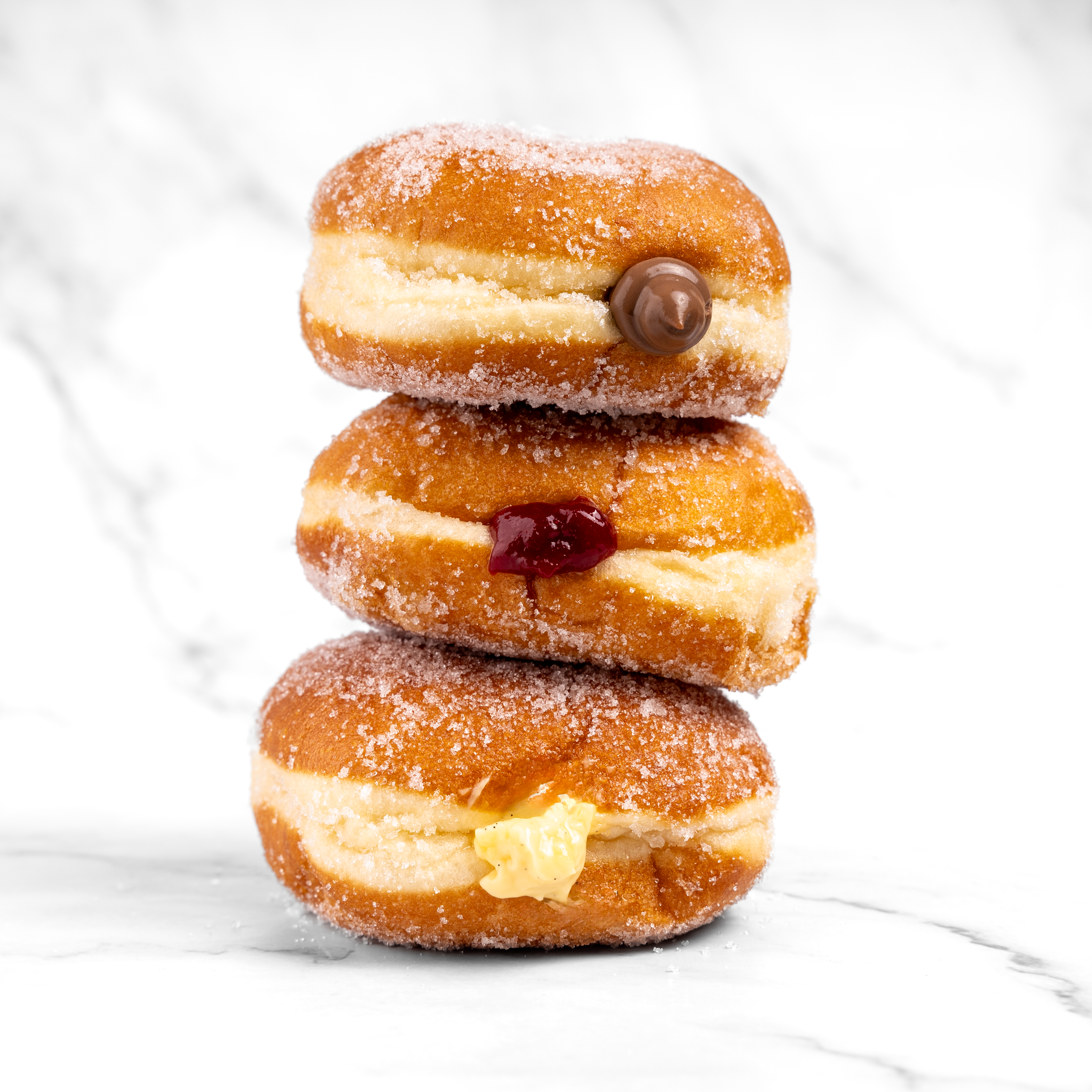 Filled with your choice of luscious jam, creamy vanilla custard, or decadent chocolate custard. A delightful explosion of flavors in every bite!