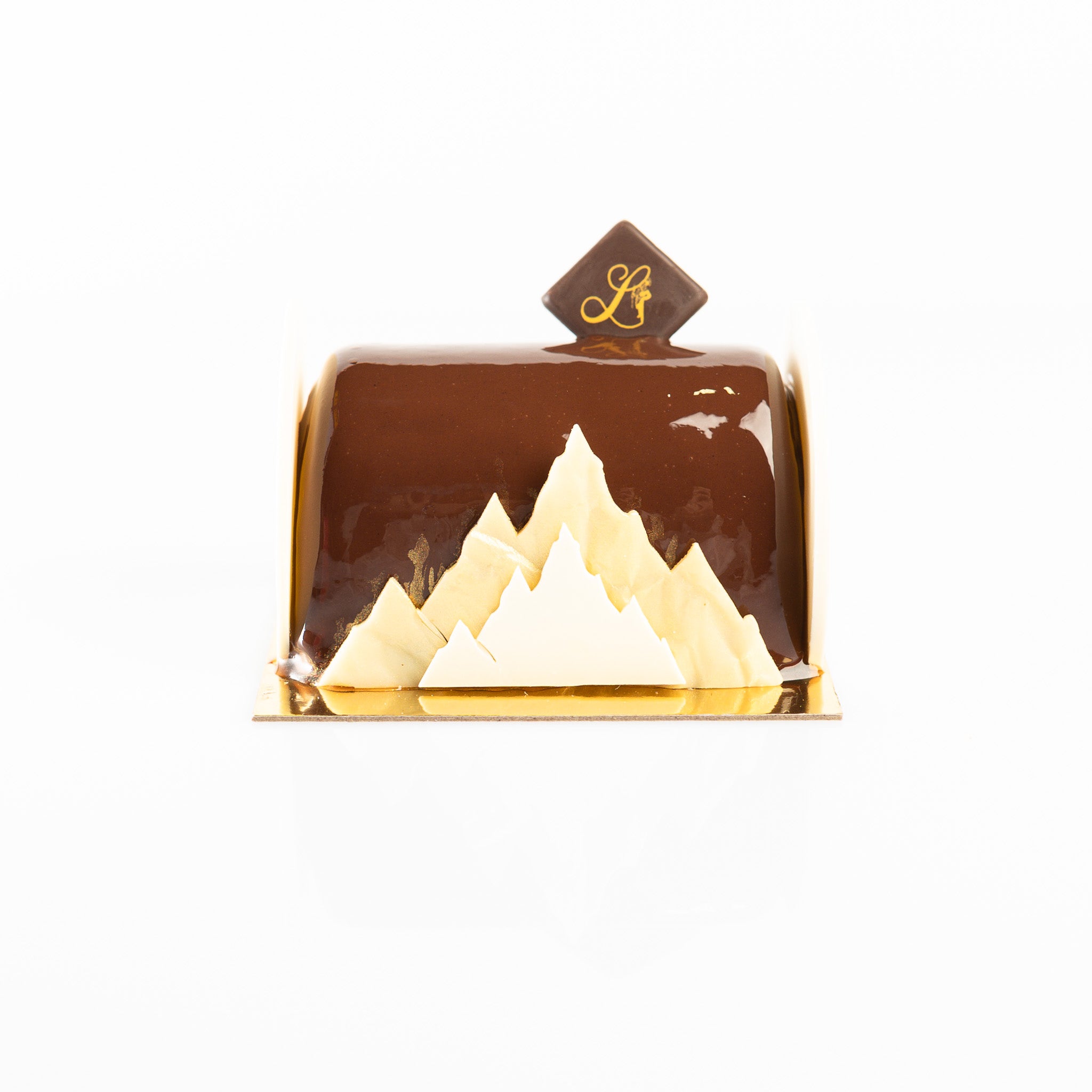 Hazelnut sponge with a delicate crunch, layered with hazelnut praline creme and a smooth tonka namelaka finished with 72% dark chocolate mousse.