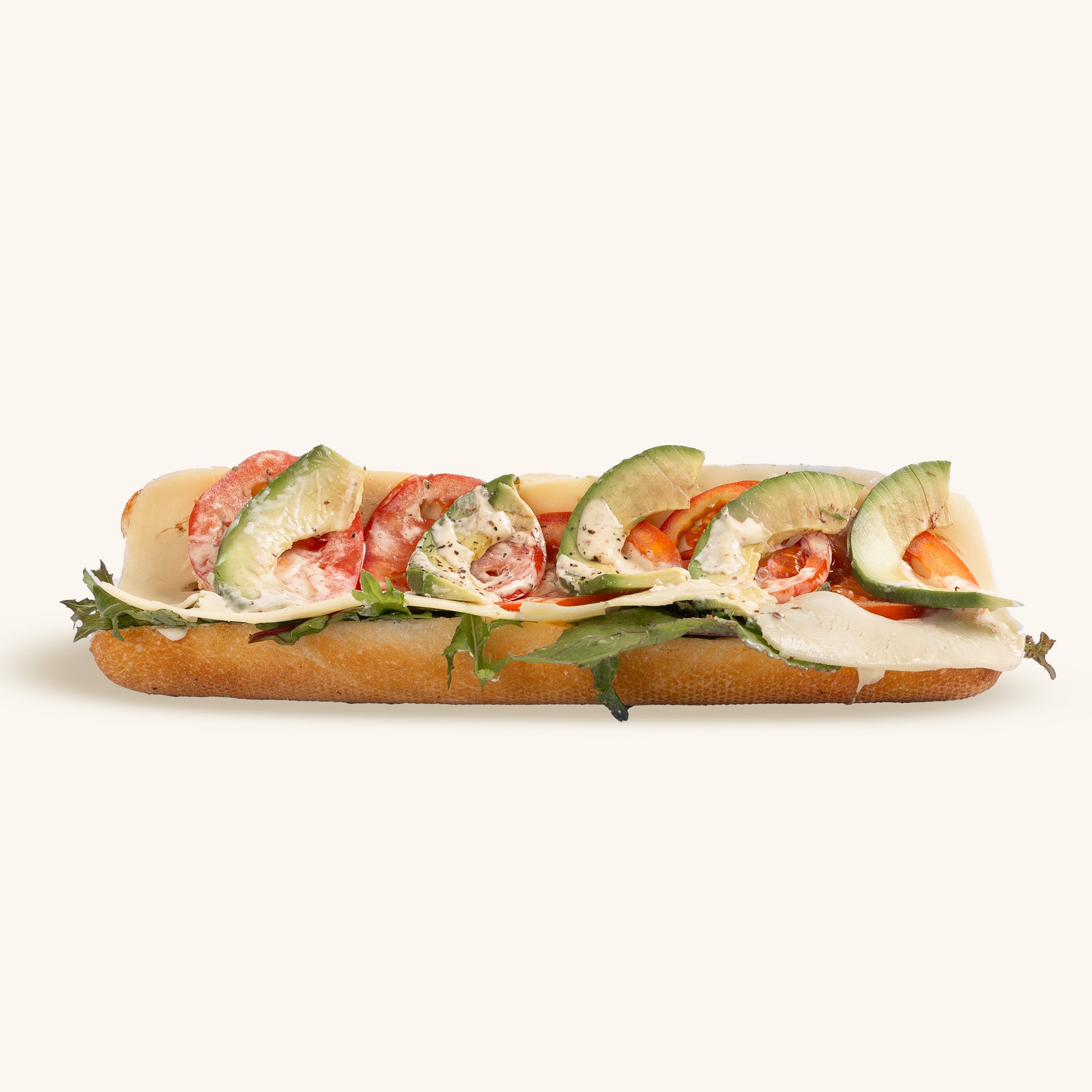 Maasdam cheese, avocado, tomato, wholegrain mustard, lettuce, salad dressing, peppe, butter